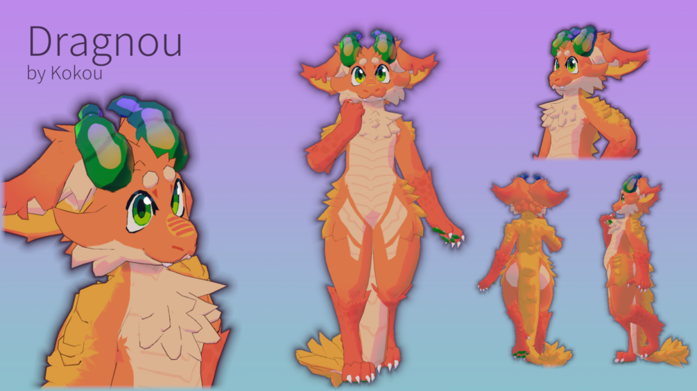 Dragnou (drag-noo) is an original Furry Dragon 3D Model and Avatar, meant for VRChat, but as a 3D model, usable in any social platform that may allow it!